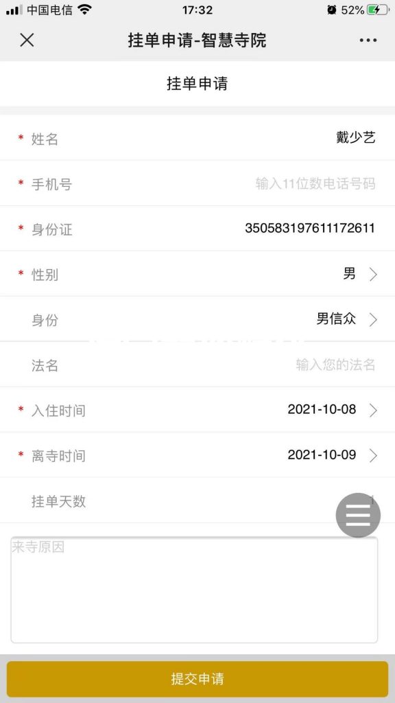 行腳師父可以通過網(wǎng)上查看寺院智慧寺院系統(tǒng),在寺院的功能板塊點擊掛單申請功能系統(tǒng)版塊,提前查看寺院的住宿情況,這樣大大為行腳師父知悉寺是否住宿額滿提供了方便之處。